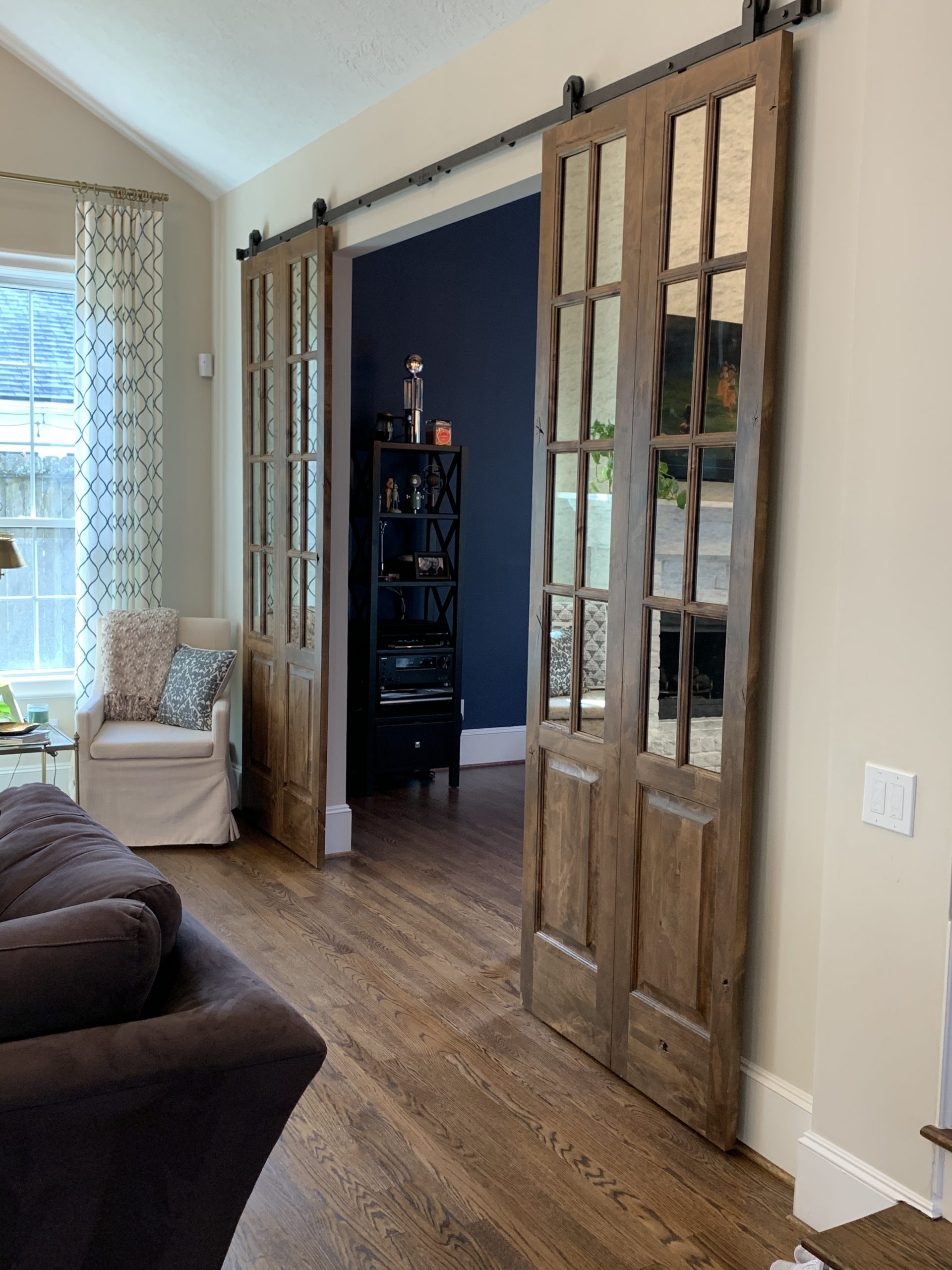 With the mix position determined, I could now get to work organizing the studio. By this time, the room had been painted, the barn doors had been installed, and my wife bought me an incredible five-year anniversary gift – a desk.