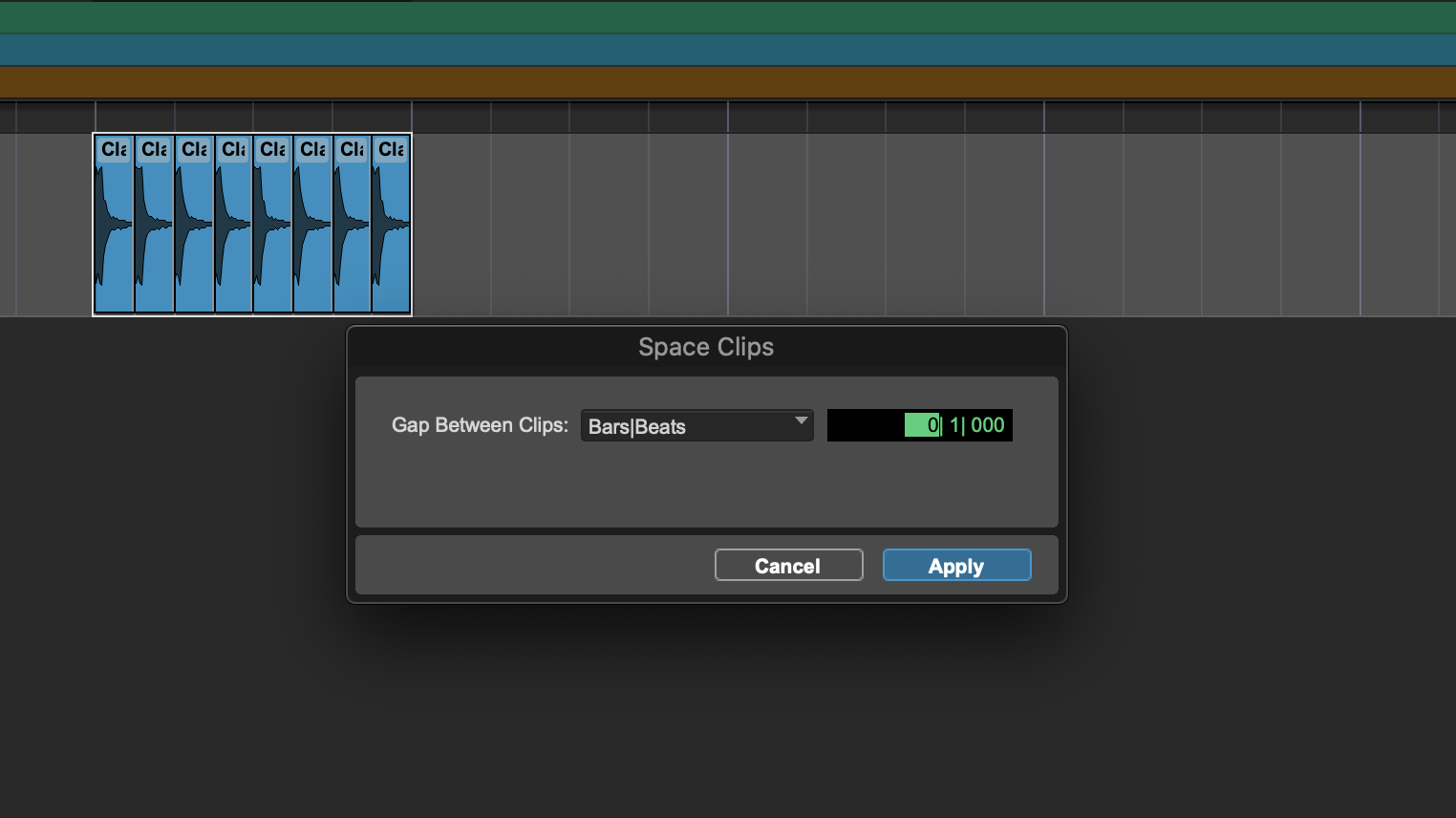 Although primarily useful for film and game sound designer, Space Clips is a new function that takes a group of clips and evenly separates them by whatever amount you like. You’re given the choice between Bars | Beats, Min:Secs, Timecode, Feet+Frames, and Samples. Operation is simple – Navigate to Edit > Space Clips, set your gap type and the value that you want to separate clips, and click apply.